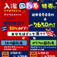 入浴回数券【特売】のお知らせ 2026/03/10 いつも花湯スパリゾートをご利用いただき、誠にありがとうございます。月日の流れは速いもので来月4月は、花湯スパリゾートの10周年Year♡(⋈◍>◡<◍)。✧♡ 日頃の感謝の気持ちをカタチに---..